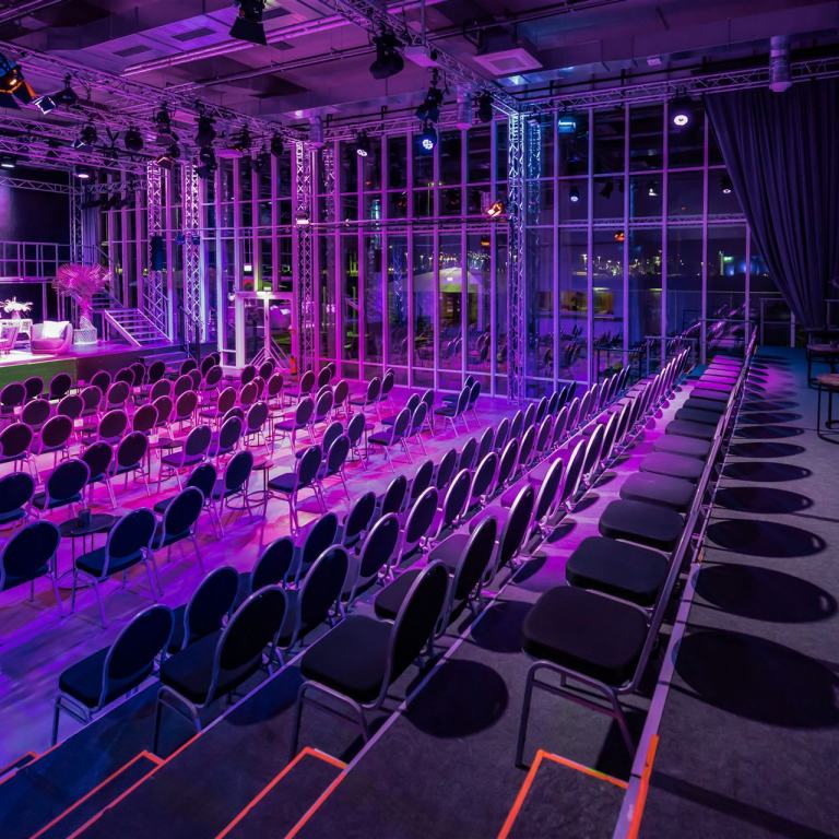 Herzstück ist der Saal - mit direktem Elbblick aus Panoramafenstern. Flexible Bestuhlung und modernste Veranstaltungstechnik sind selbstverständlich.