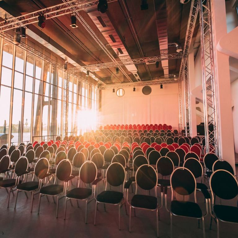 Das Herzstück unserer Location bildet der 300 m² große Saal. Durch die bodentiefen Panoramafenster haben Sie einen atemberaubenden Blick in den Hamburger Hafen. Der Saal bietet Ihnen die Möglichkeit, einzigartige Veranstaltungen in tollem Hamburger Ambiente zu feiern. Im Saal befindet sich eine fest eingebaute Bühne, die sich für Reden, Präsentationen, Showacts oder als Erweiterung des Saals eignet. Durch die flexible Anordnung von Reihenbestuhlung, Bestuhlung an Rund-/Ecktischen oder als Messefläche haben Sie individuelle Möglichkeiten für Ihr Event.