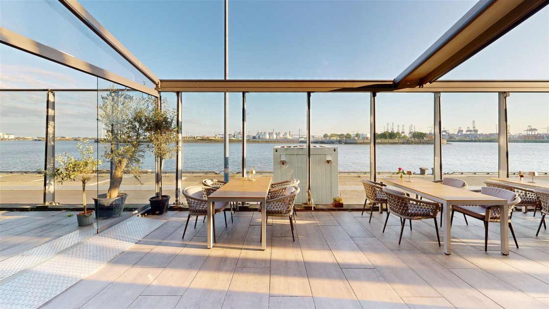 Maritimes Outdoor-Feeling: Unsere zum Teil überdachte Elbterrasse bietet Wetterunabhängigkeit direkt am Wasser.
