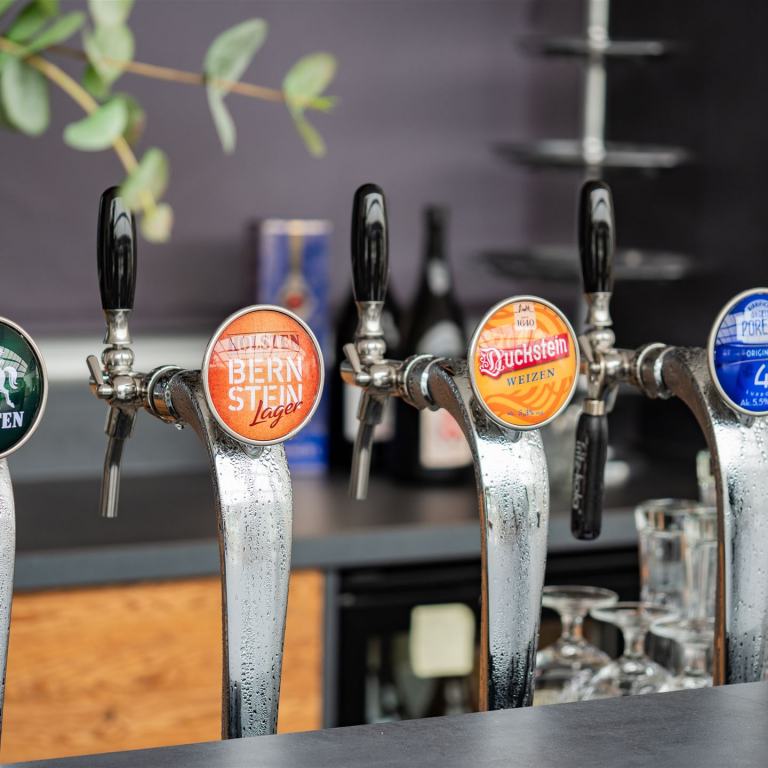 Bis zu vier Sorten frisch gezapftes Bier an unserer Foyerbar