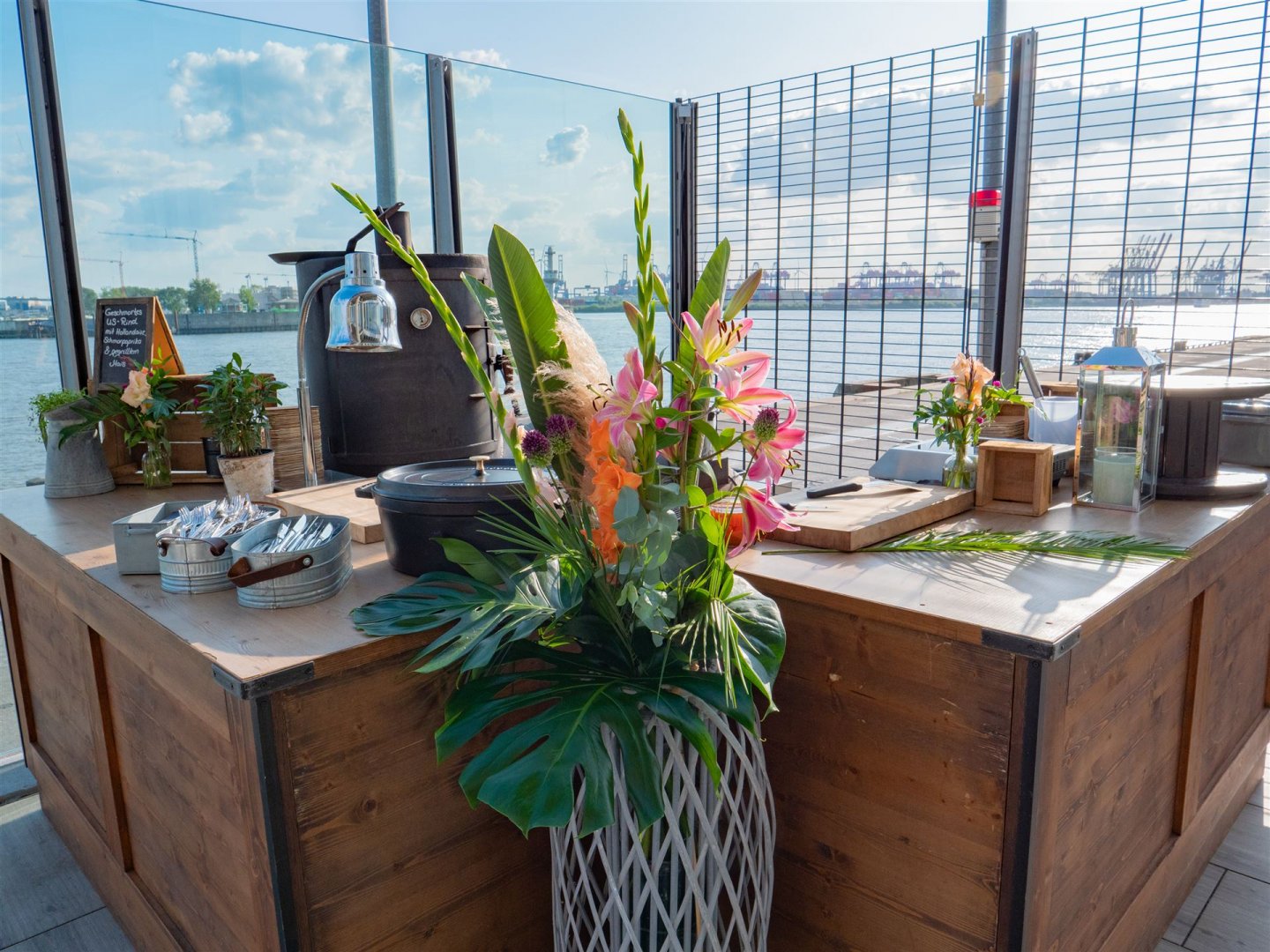 Zudem arbeiten wir mit ausgewählten Hamburger Catering-Partnern zusammen. Vom klassischen Buffet, über BBQ auf der Elbterrasse bis hin zum aufwändigen Eventkonzept oder Abendmenü - gemeinsam setzen wir Ihre Wünsche gerne um!